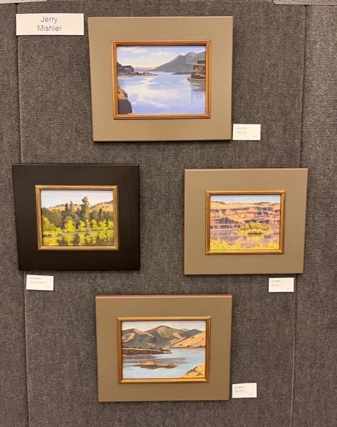 UPDATE: Jerry and his friend and painting buddy, Carol Hansen, have been in the field around Hood River, The Dalles and Mt. Hood since Monday morning, getting out early to beat the heat. The goal is to paint 4-5 works. Thursday they turned in completed paintings to Maryhill. Judging occurs today and Sunday the show opens to the public. Stay tuned for photos from the show.